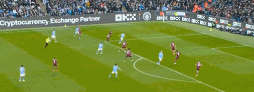 第69分鐘,薩維尼奧右路橫傳,里科-劉易斯插上橫敲,西漢姆聯兩名后衛相撞,哈蘭德笑納大禮輕松推射命中,完成2射1傳好戲,曼城3-0遙遙領先。